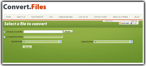 - Mặc định tuỳ chọn Choose a local file được chọn, cho phép bạn chọn dữ liệu cần chuyển đổi có trên máy tính, bạn chỉ cần bấm nút Browse để chọn file nguồn cần chuyển đổi, khung Input format lập tức hiển thị định dạng tập tin nguồn, tiếp theo bạn chọn định dạng tập tin đích cần chuyển đổi sang trong khung Output format, sau đó nhập địa chỉ email của mình vào khung Your email để sau khi chuyển đổi trang Web sẽ gửi link chứa file sau khi chuyển đổi để bạn tải về.